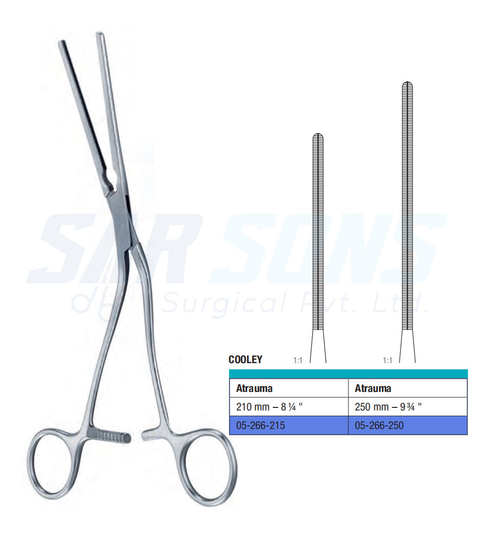 250 mm – 9 ¾ " 05-266-250 Cooley Vascular Forceps Sidewards angled on flat