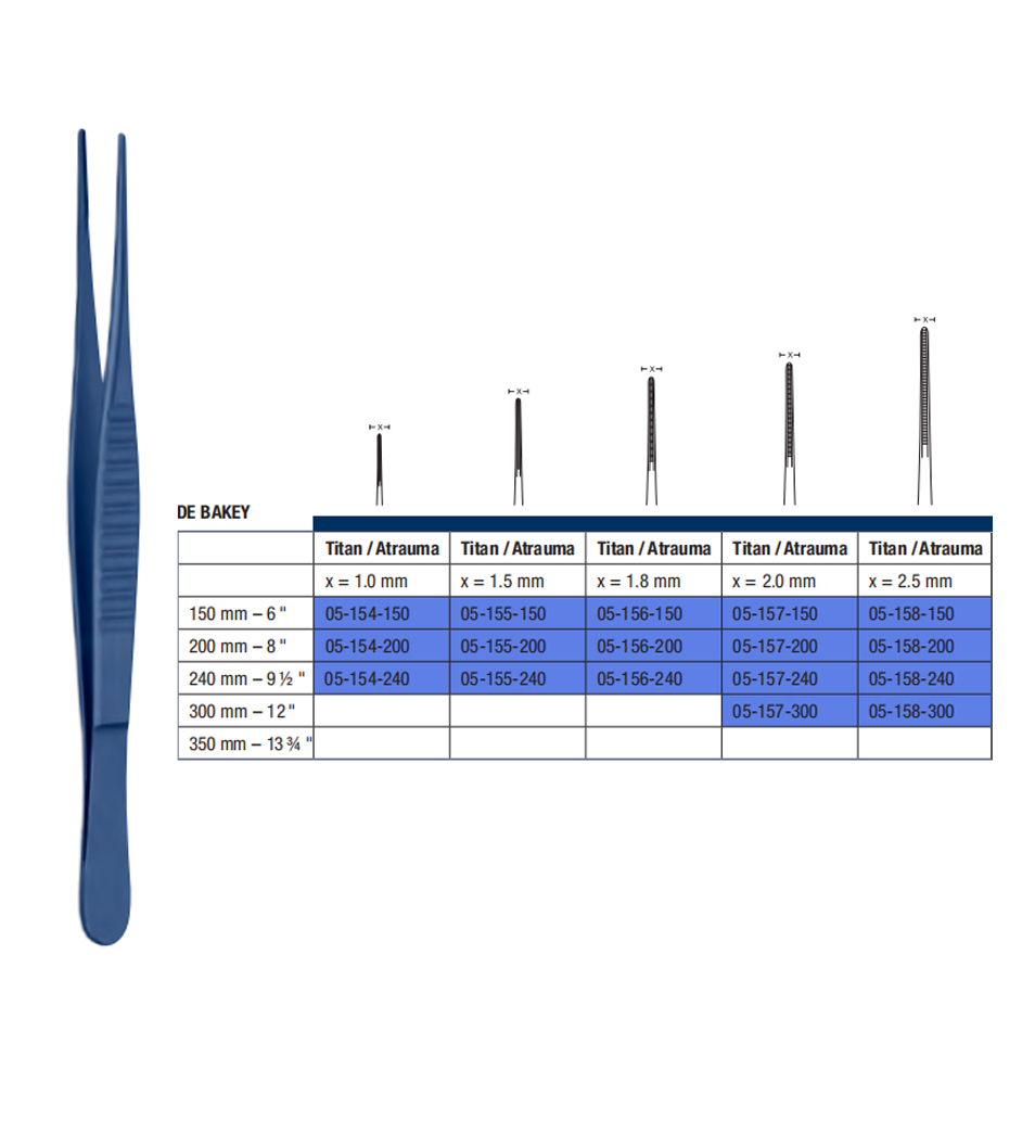 240 mm – 9 ½ " 05-154-240 De Bakey Atraumatic Tissue Forceps Titan ( x = 1.0 mm )