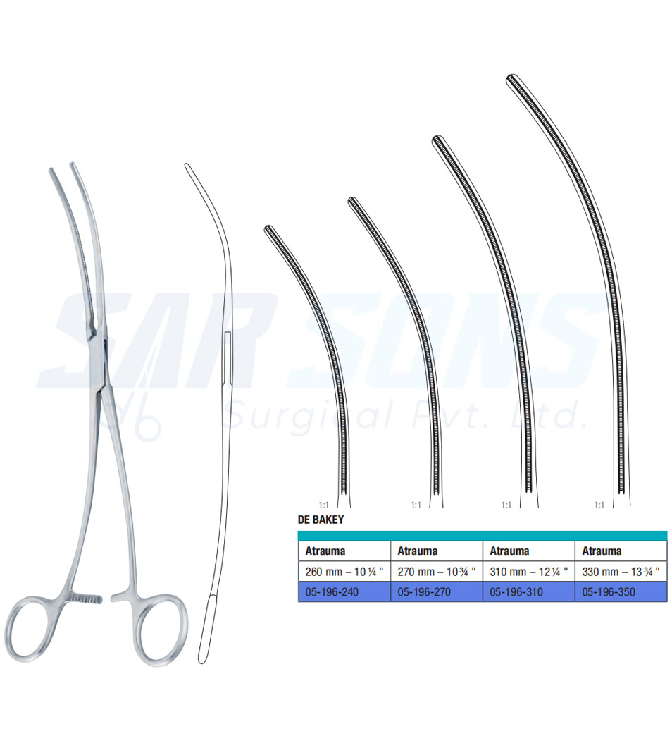 310 mm – 12 ¼ " 05-196-310 De Bakey Vascular Forceps Curved