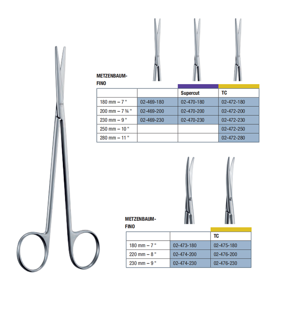 230 mm – 9 " 02-470-230 Metzenbaum-Fino Operating Scissors Straight Supercut Blunt/Blunt