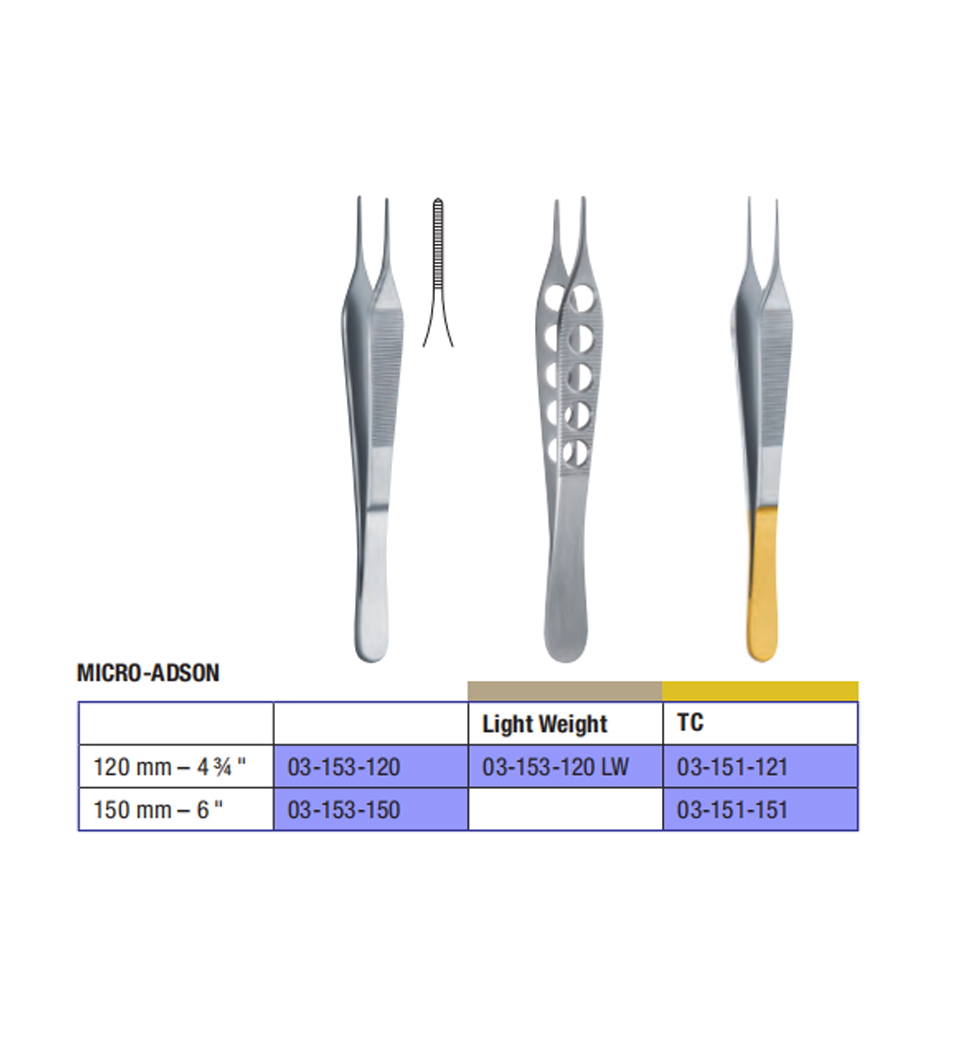 120 mm – 4 ¾ " 03-151-121 Micro-Adson Dressing Forceps TC